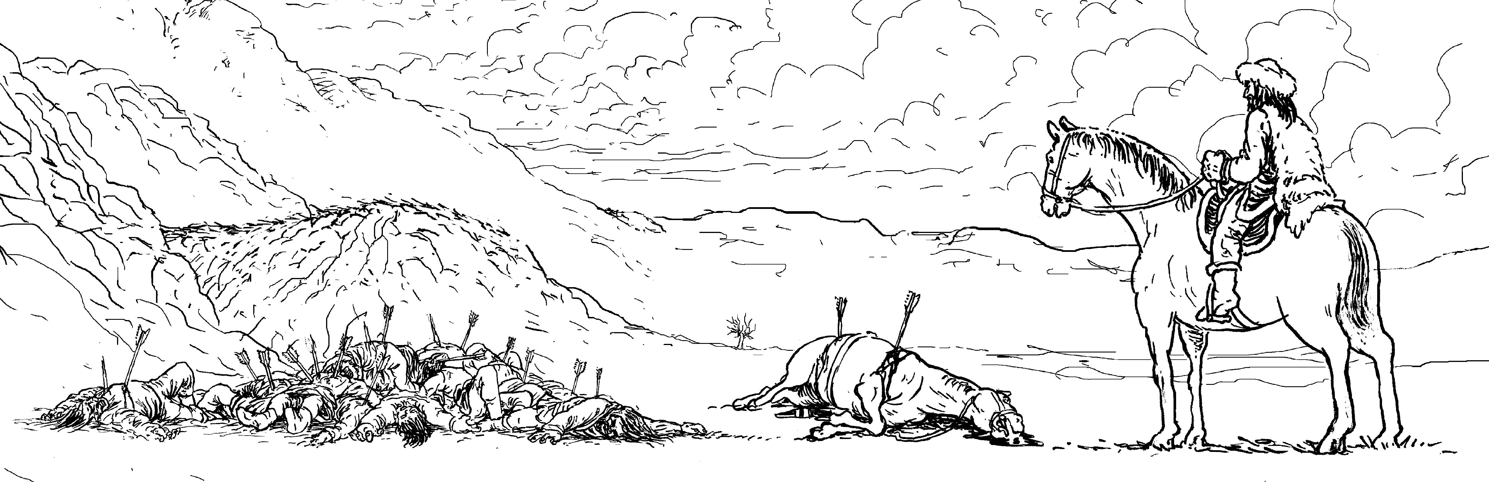 Illustrations for a documentary on The Book of Dede Korkut, which contains the most famous legends and epic stories of the Oghuz Turks dating back to the 14th century. The stories carry morals and values significant to the social lifestyle of the nomadic Turkic peoples and their pre-Islamic beliefs.