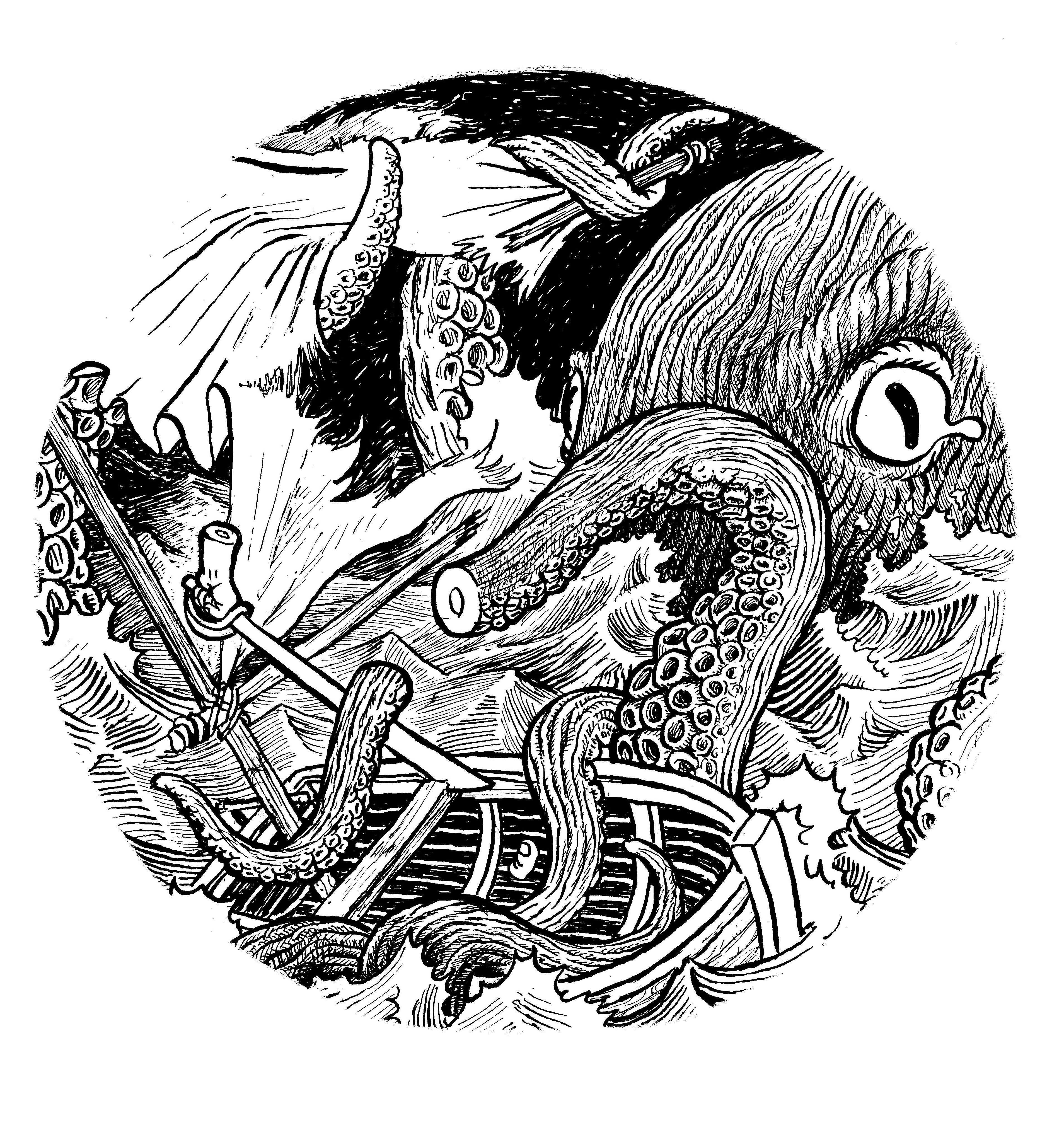 The following illustrations describe a fictional alternate universe in which Cervantes’ severed hand continues its own adventure and embarks on a Don Quixote-like adventure.